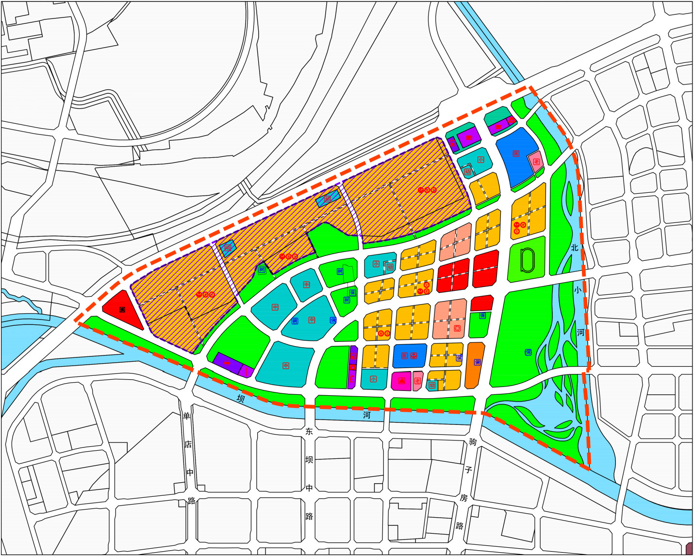 该区域中部规划八处东坝乡安置房地块(黄色图块)