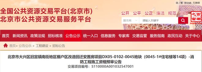 工程名称:北京市大兴区旧宫镇南街地区棚户区改造回迁安置房项目DX05-0102-0045地块(0045-1#住宅楼等14项)-消防工程