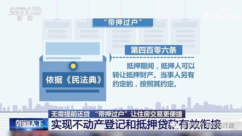 北京市近日启动存量住房交易“带押过户”模式。居民出售在京住房时不必先结清前一笔贷款,可在原抵押权不解除的情况下直接办理住房所有权转移登记。买卖双方在不同银行贷款也可实现“带押过户”